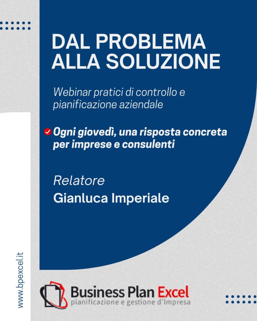 Da settembre parte la nostra nuova serie di Webinar Gratuiti dedicati a controllo e pianificazione aziendale: un appuntamento fisso, ogni giovedì – 1 ora insieme, per affrontare le sfide quotidiane di imprese e consulenti e trasformarle in soluzioni pratiche.