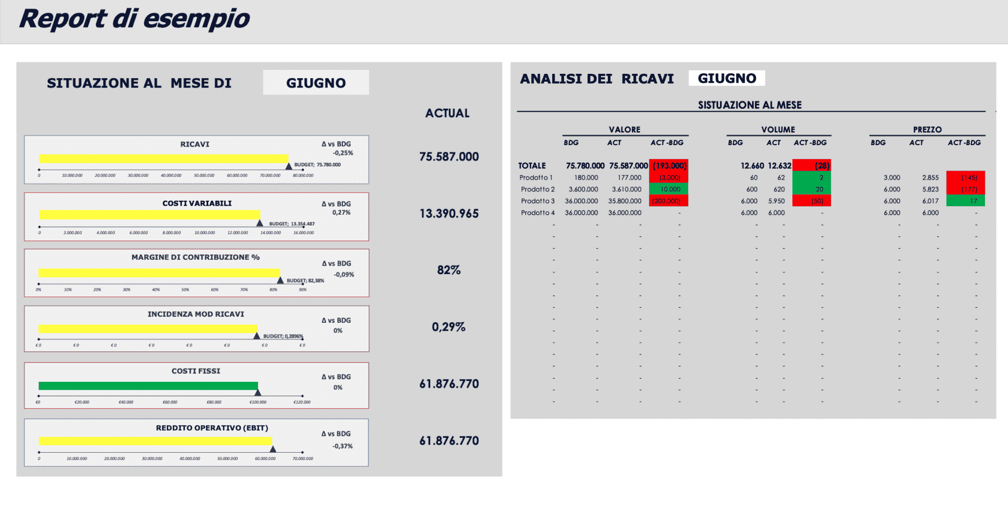 Modello Excel, per Aziende di Produzione. Inserimento della Distinta Base, gestione del Magazzino e analisi degli scostamenti Budget-Consuntivo sul Mese